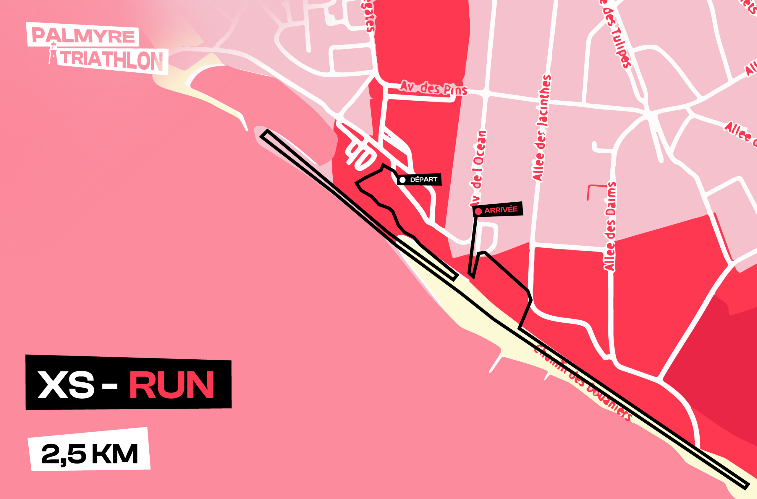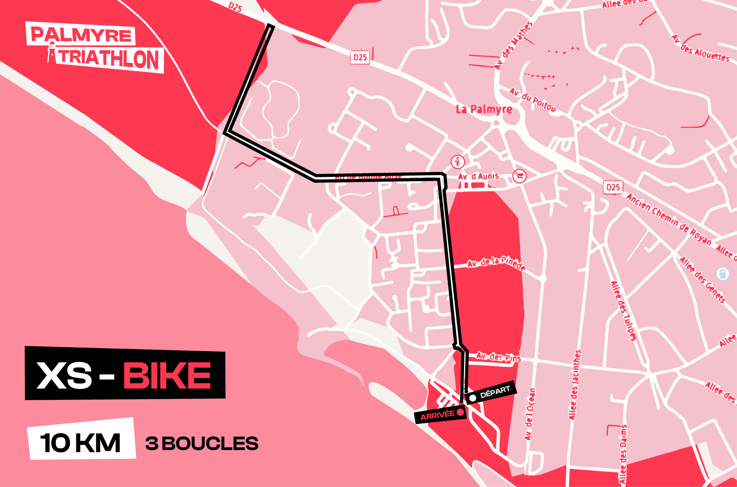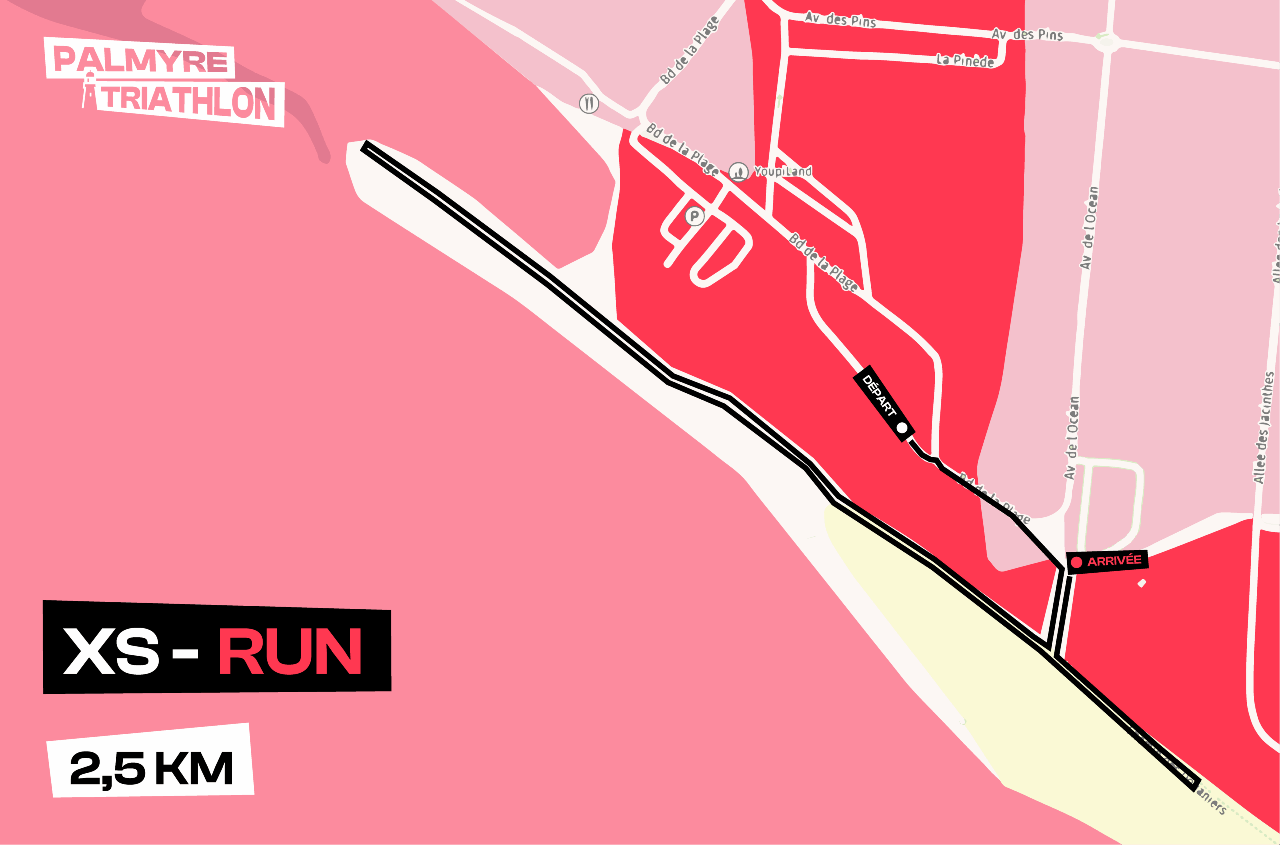 Le départ se fait depuis la plage de La Palmyre, avec un petit passage rafraîchissant dans les eaux de la magnifique baie de Bonne Anse, suivi d’un parcours Bike très roulant et rapide au cœur même de La Palmyre.